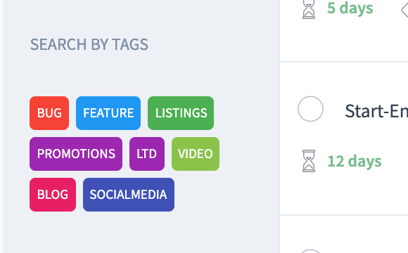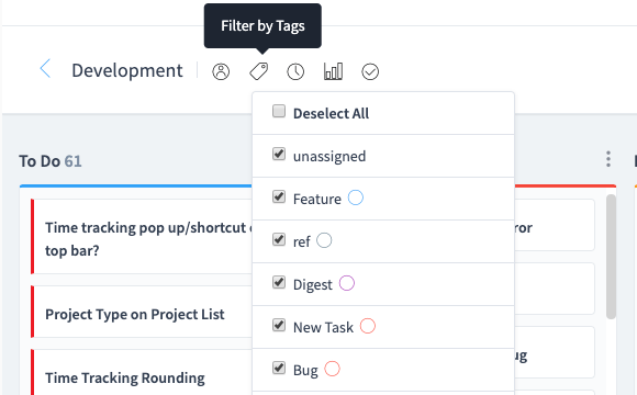 Filter your project tasks view by Users, Deadline, Tags and Status.